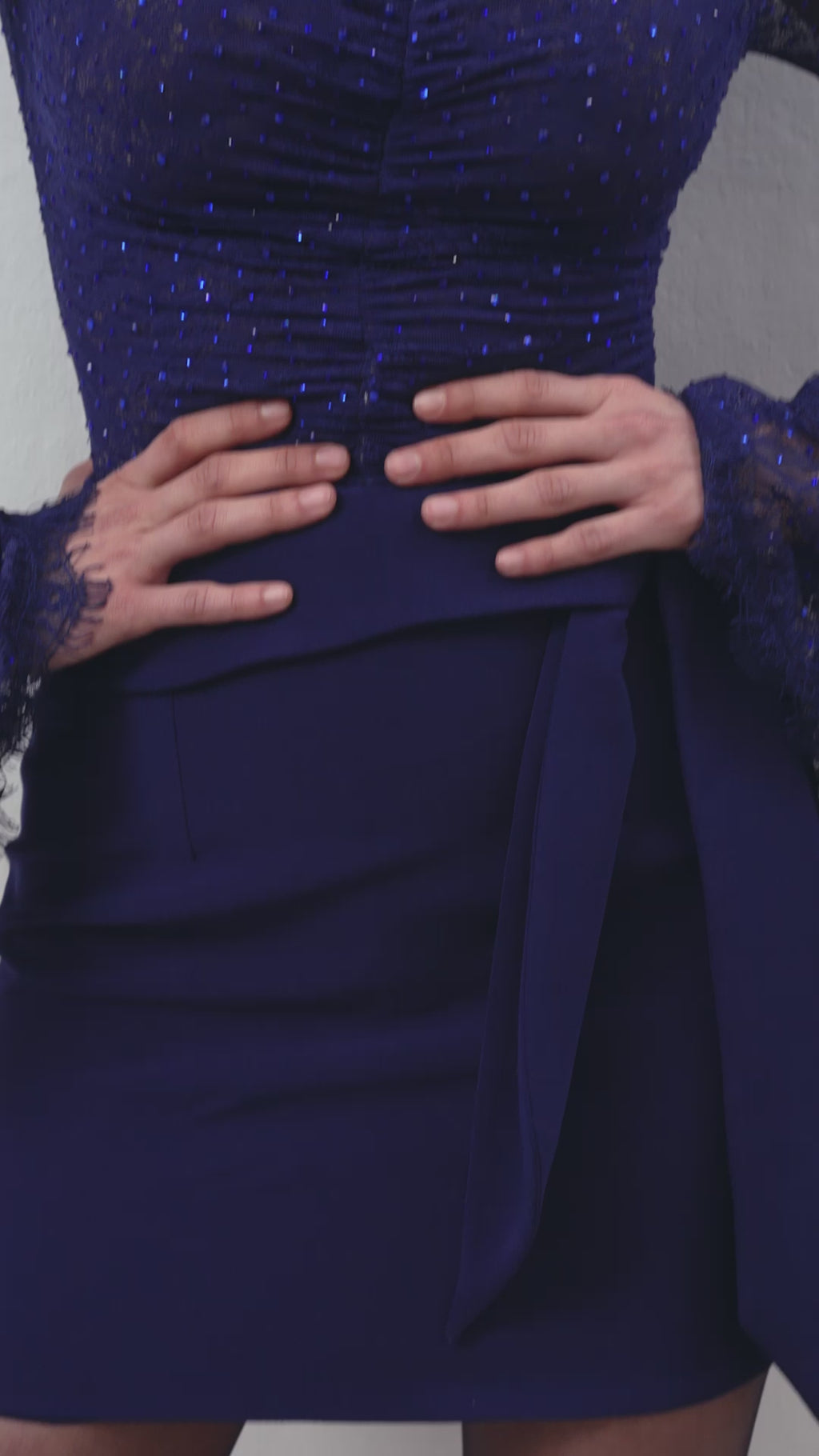 The JULIA Dress in Beacon Blue radiates both energy and elegance. Its flared sleeves and ruched lace details add movement, while the belt accentuates your silhouette. With its mini length and playful yet refined design, the JULIA Dress is a standout choice for both special occasions and stylish daytime events.