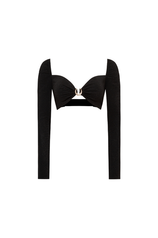 The Maja Skirt features a glittering fabric, bold cut-outs, and refined accessory details, creating a striking design. The timeless sophistication of black makes this midi-length piece a standout choice for special occasions.